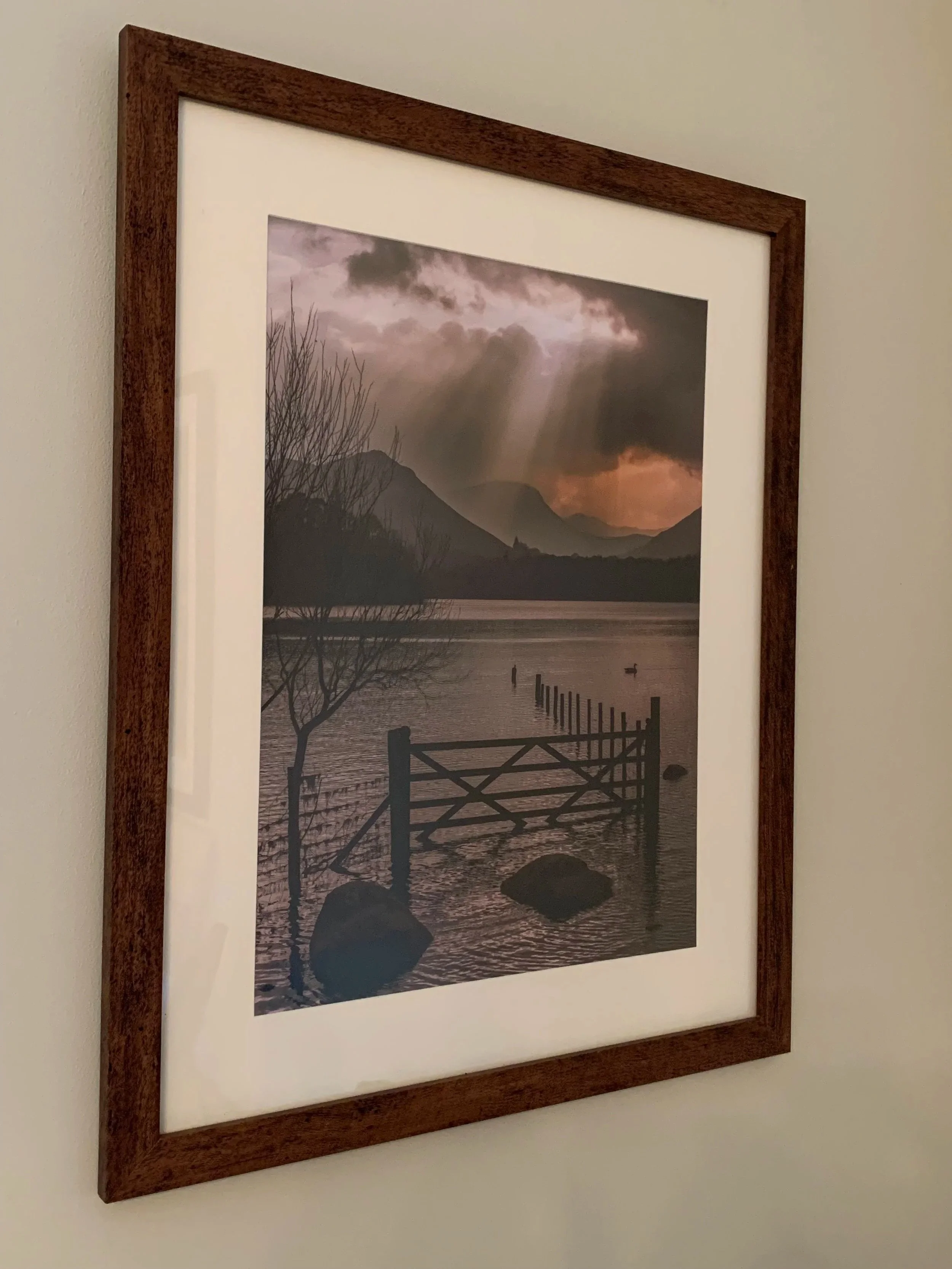 My first thought given my limited experience so far is that framing is a headache and I would sooner stay clear! Theres a number of challenges to consider, firstly a frame is generally chosen by a customer with their existing décor in mind and that’s fine, but of course when I am building my stock, I have no clue what that décor or any other decor looks like. Given I am a small business with limited funds I can’t stock a myriad of different frames, this necessitates taking a standard approach going with something neutral, like a chestnut-coloured wooden frame and then hoping for the best.